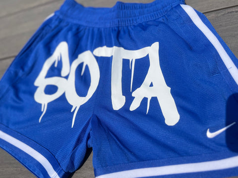 Customize the color and name on these shorts.  The name appears across the front of the shorts in drip paint font.  (4-5 CHARACTERS) 5” inch inseam.